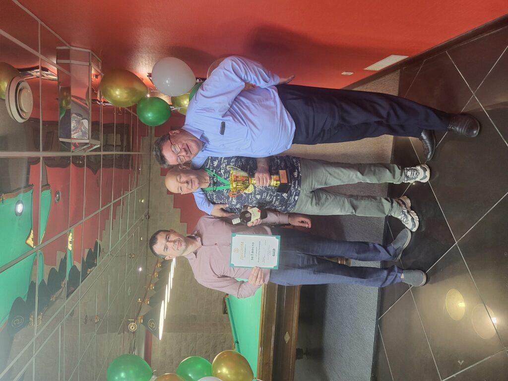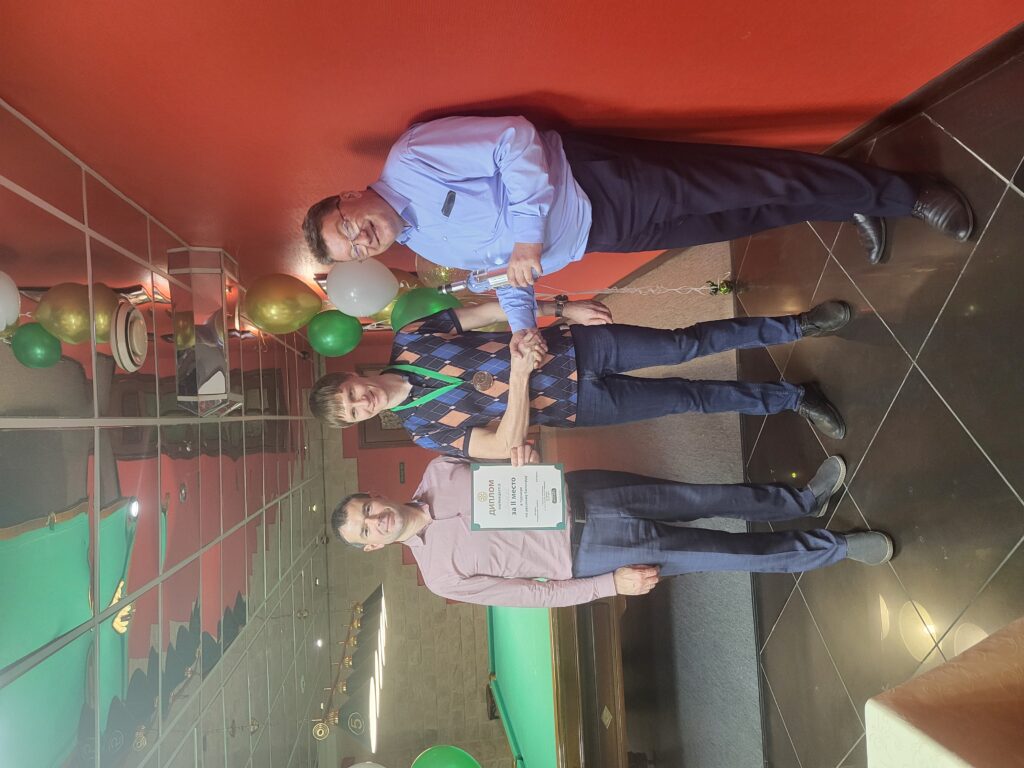 В бильярдном турнире первым из игры вышел Василий Игумнов, директор типографии «Лада-Принт», член клуба «Ротари Тольятти Меркурий», постоянный участник турнира и опытный игрок. Надеюсь, поощрительный приз — чайник — скрасил его печаль. Третье место досталось Александру Конышеву. А в финале разыгралась битва между Андреем Беляковым и Александром Помещиковым. Опыт победил молодость, тем боле, что Александр Юрьевич давно шел к своему кубку.